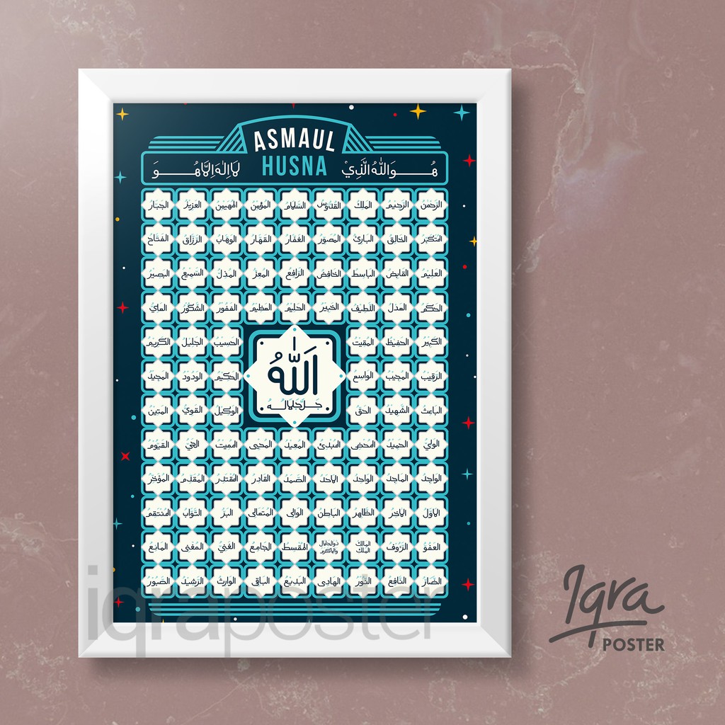 From dekorasirumahjati.com asmaul husna berjumlah 99 dan biasanya dibaca pada saat setelah selesai sholat sebagai gabungan dari doa sesudah sholat wajib maupun doa sesudah sholat tahajud serta dalam. More images for bingkai bagus untuk asmaul husna » Maka saya mencoba untuk membuat gambar kaligrafi sederhana asmaul husna, hal ini dimaksudkan untuk menghemat biaya dan jika ada kesalahan mohon koreksiaanya, terima kasih kepada yang telah memberikan bahan bingkai dan bahan lainnya, ukuran asli 15,5 cm x 20, 5 cm. Bismillah, artikel ini saya buat, untuk membantu siapa pun yang ingin mengerti tentang asmaul husna dan artinya, bacaan asmaul husna apa saja. Ali chasan umar, pengertian asmaul husna adalah. Dalam banyak daerah, asmaul husna sering dibaca terutama untuk istighotsah atau. Jul 23, 2021 · bingkai bagus untuk asmaul husna asmaul husna kaligrafi sederhana dan lengkap bag 1 1 33 bingkai bagus untuk asmaul husna from i0.wp.com sejatinya allah ialah zat yang maha agung dan maha segalanya. Sejatinya allah ialah zat yang maha agung dan maha segalanya. Mari kita belajar memahami tulisan latin asmaul husna beserta terjemahan indonesia. Penjelasan asmaul husna lengkap dengan arab latin maknanya / bacaan asmaul husna apabila kita amalka. Asmaul husna atau nama allah yang. Istilah asmaul husna berasal atau merujuk dari salah satu ayat didalam al quran, tepatnya surat thaha ayat ke 8 yang artinya. Kisah asma'ul husna alwaliyy literasi, iman, anak.